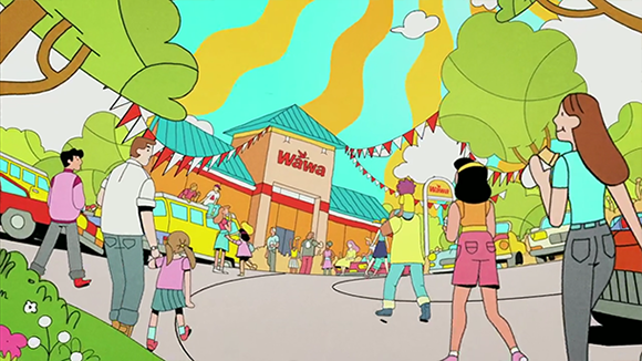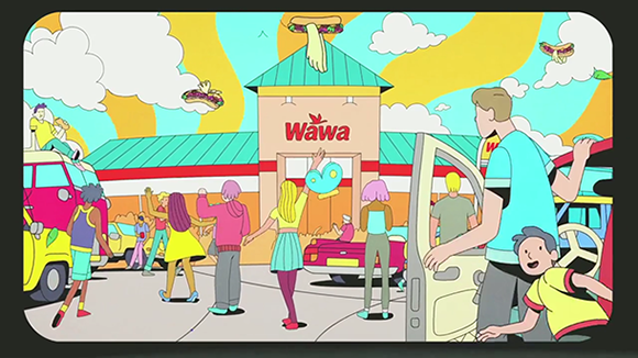 A series of animated TV spots for US-based sandwich company Wawa. As well as laying out most of both spots and working on the animatic for one of them, I also provided layered background art for compositing and designed most of the characters. |