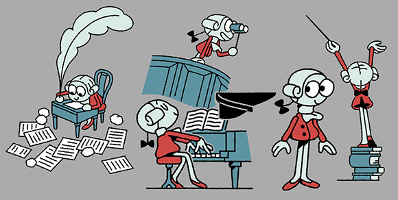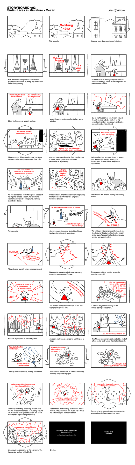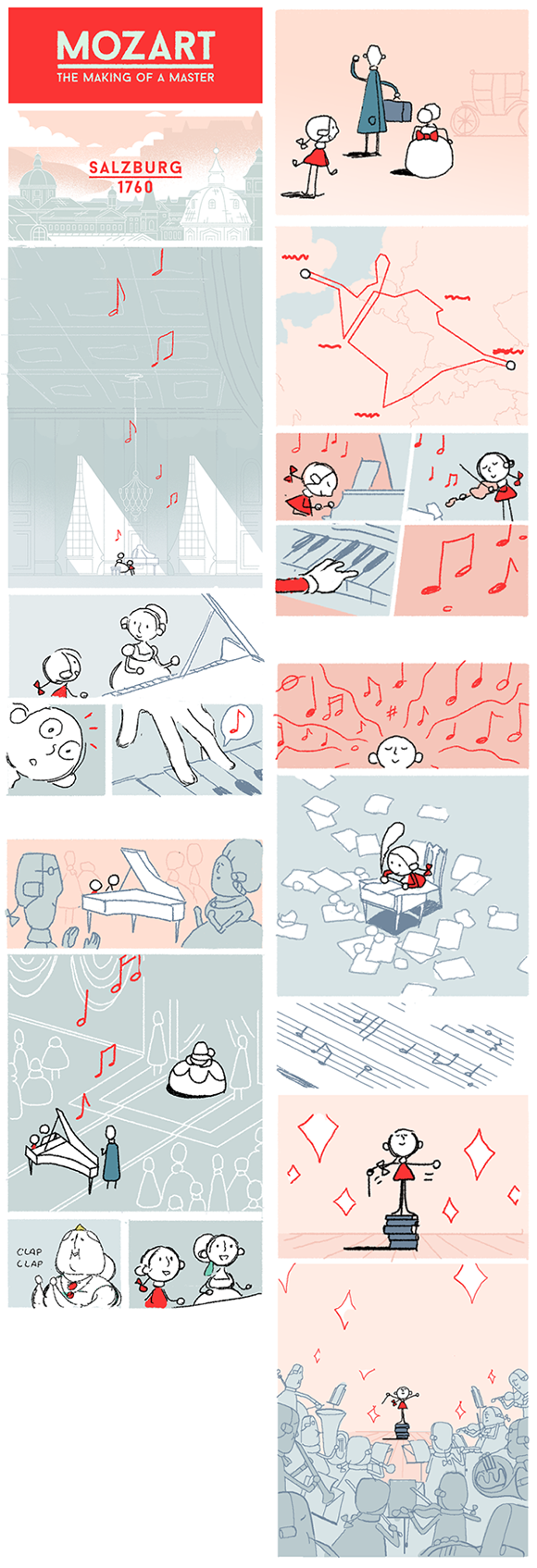 Storyboards, character & environmental design for the animated comic I produced for Sinfini Music, Mozart: The Making of a Master.